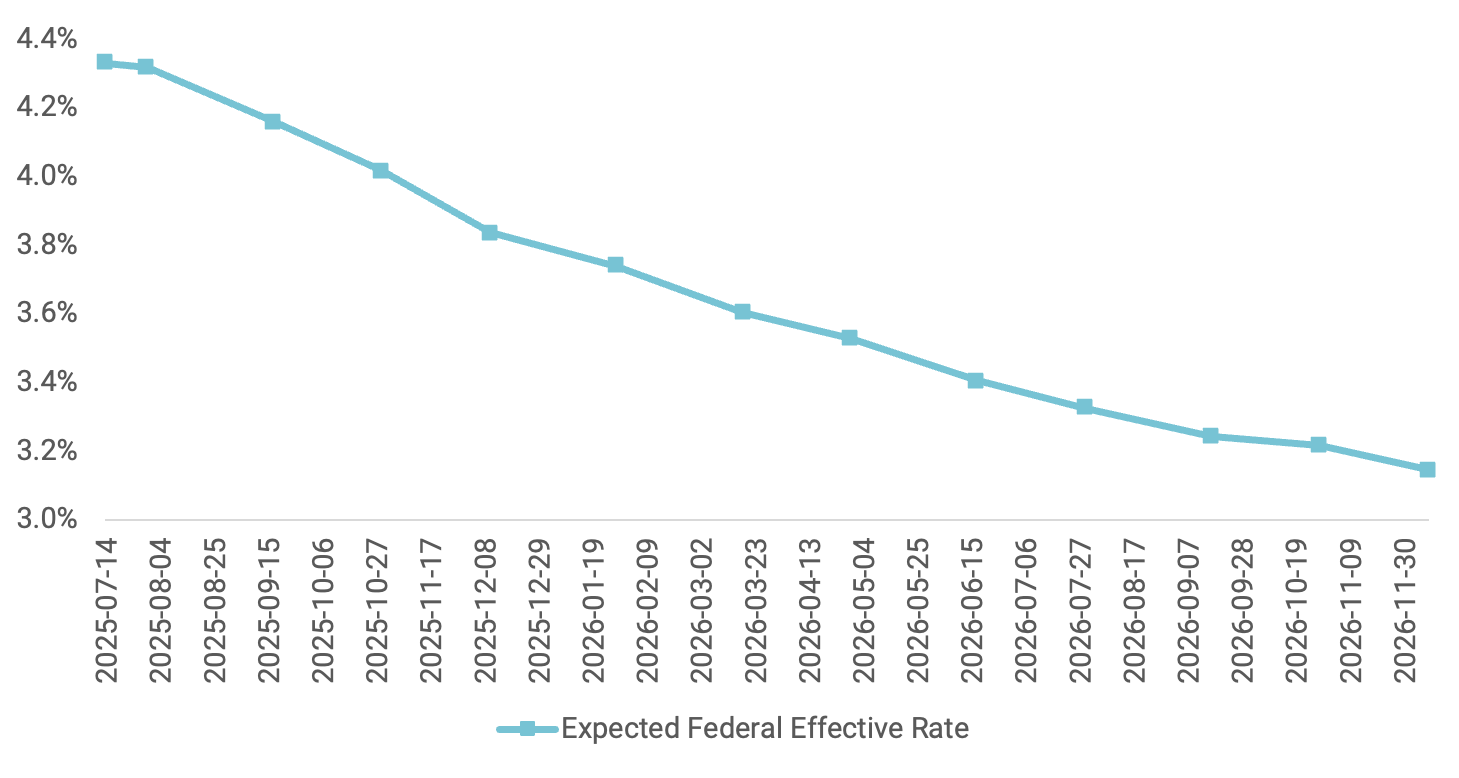 Source: Bloomberg, World Interest Rate Probability (WIRP) as of 7/14/2025