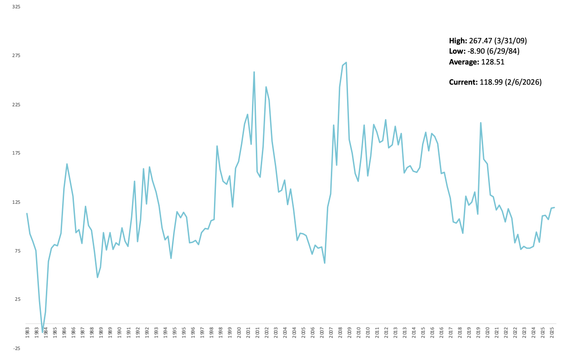 High Yield Credit Spreads: Additional yield received above US Treasuries for debt of riskier companies