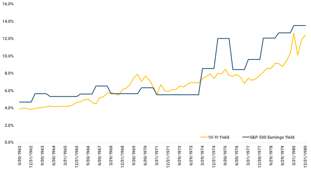 S&P 500 Earnings Yield vs. 10-Yr Treasury Yields (1962-1980)
